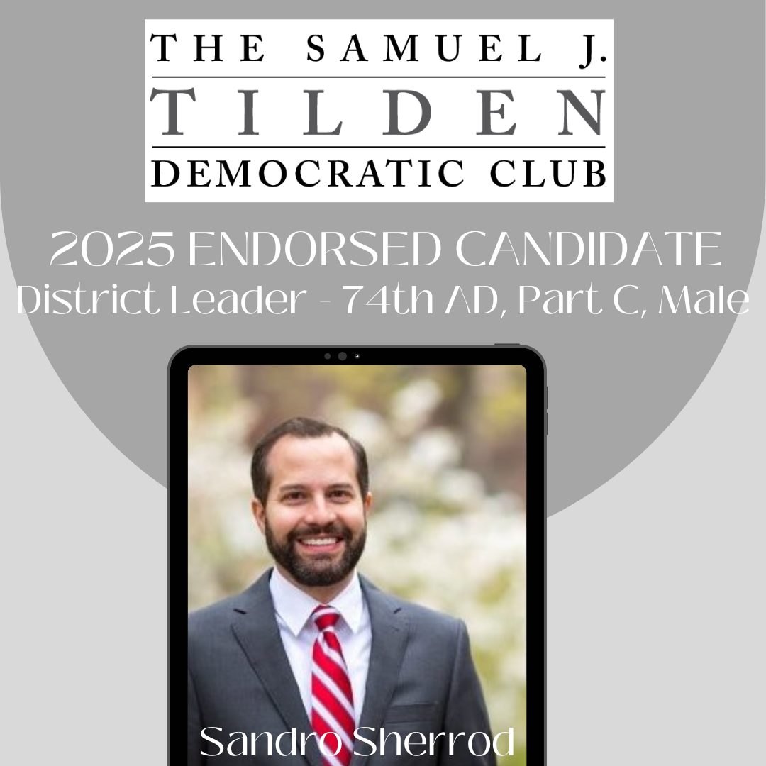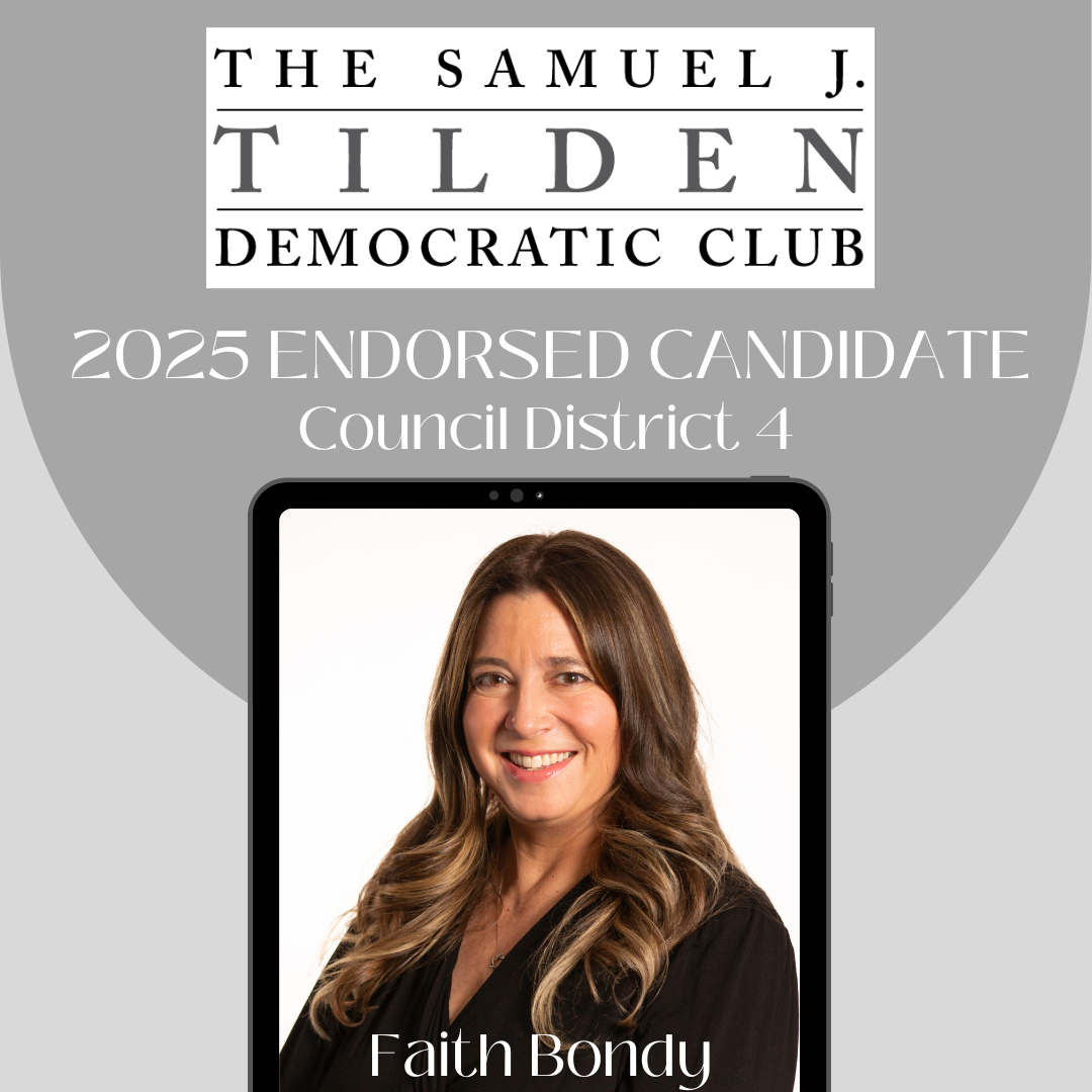 AnnouncementsCongratulations to Tilden’s Endorsed CandidatesJanuary 22, 2025Congratulations to Tilden’s Endorsed CandidatesBorough PresidentKeith PowersCity Council District 2Harvey EpsteinCity Council District 4Faith BondyDistrict Leaders 74 AD Part CSandro SherrodMichelle D. WinfieldState CommitteeElyssa Kates