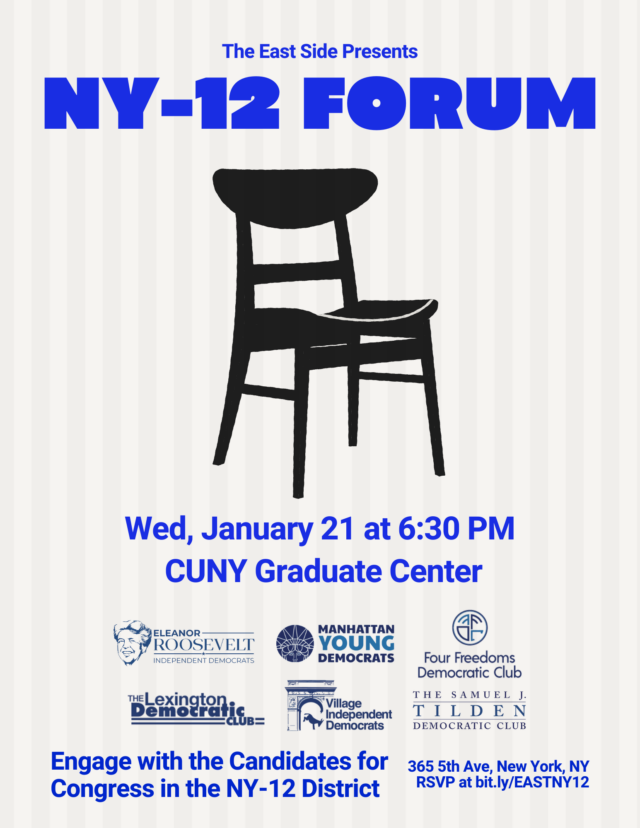 Nine candidates participated in the forum co-hosted by Tilden this week.  It was widely attended by members from NY-12 Democratic Clubs and covered extensively by the news media. It took an extensive amount of planning but was a huge success! Thank you to all of the organizers, participants and attendees!